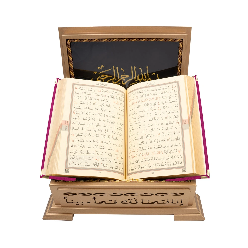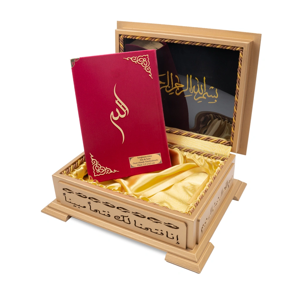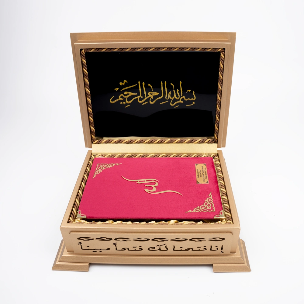Ahşap Kutulu Kadife Kuran-ı Kerim (Hafız Boy, Divan Lafzatullah, Fuşya Pembe)