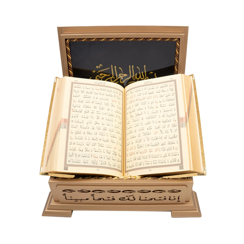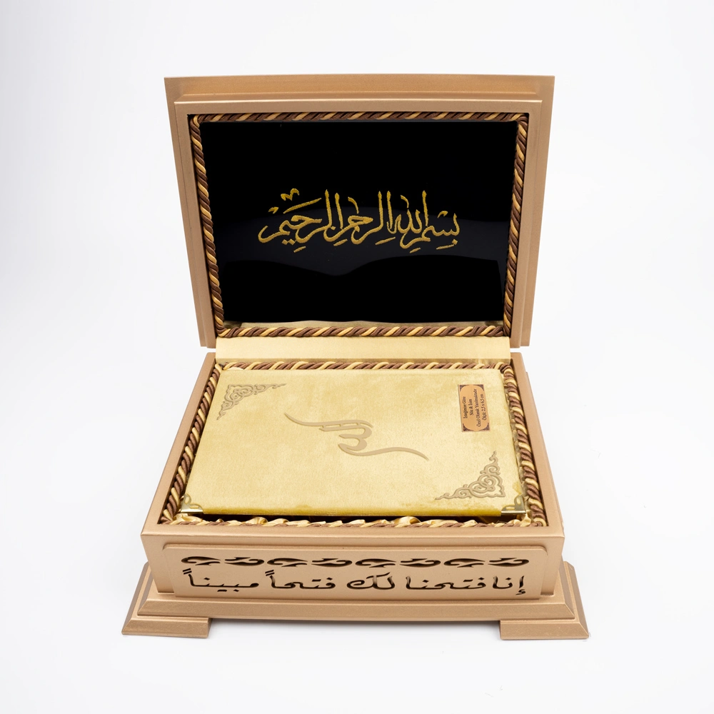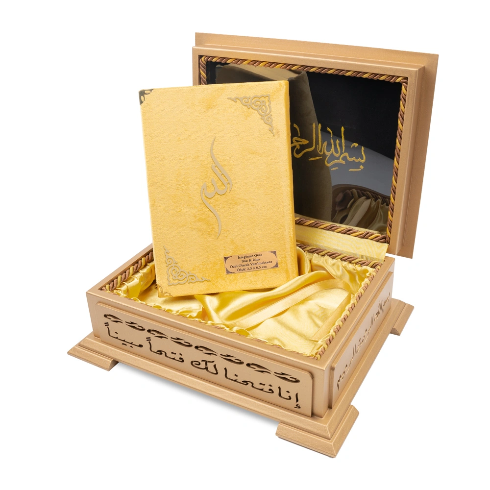 Ahşap Kutulu Kadife Kuran-ı Kerim (Hafız Boy, Divan Lafzatullah, Gold)
