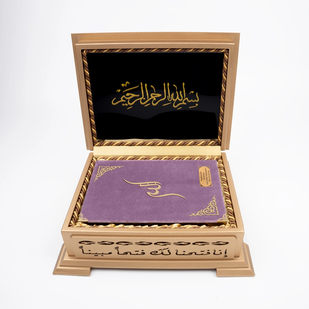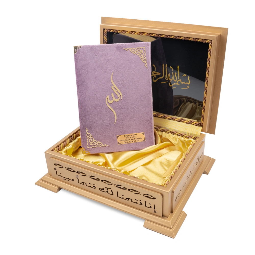 Ahşap Kutulu Kadife Kuran-ı Kerim (Hafız Boy, Divan Lafzatullah, Lila)