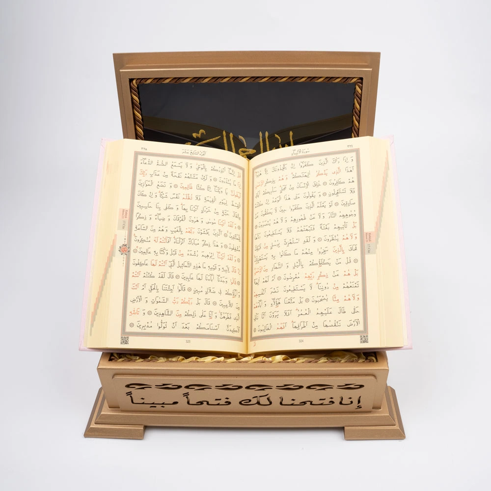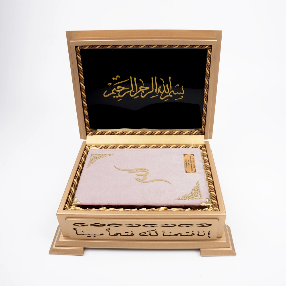 Ahşap Kutulu Kadife Kuran-ı Kerim (Hafız Boy, Divan Lafzatullah, Pembe)