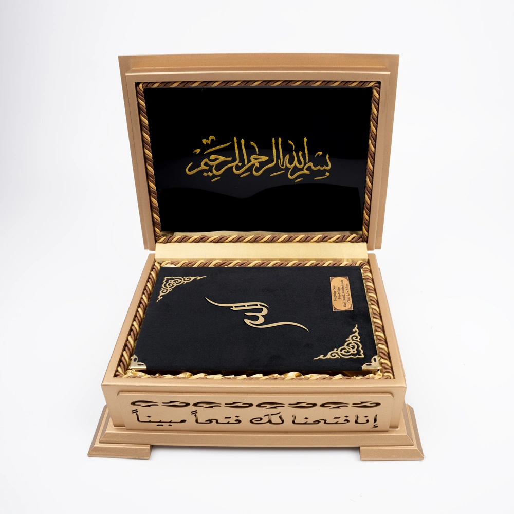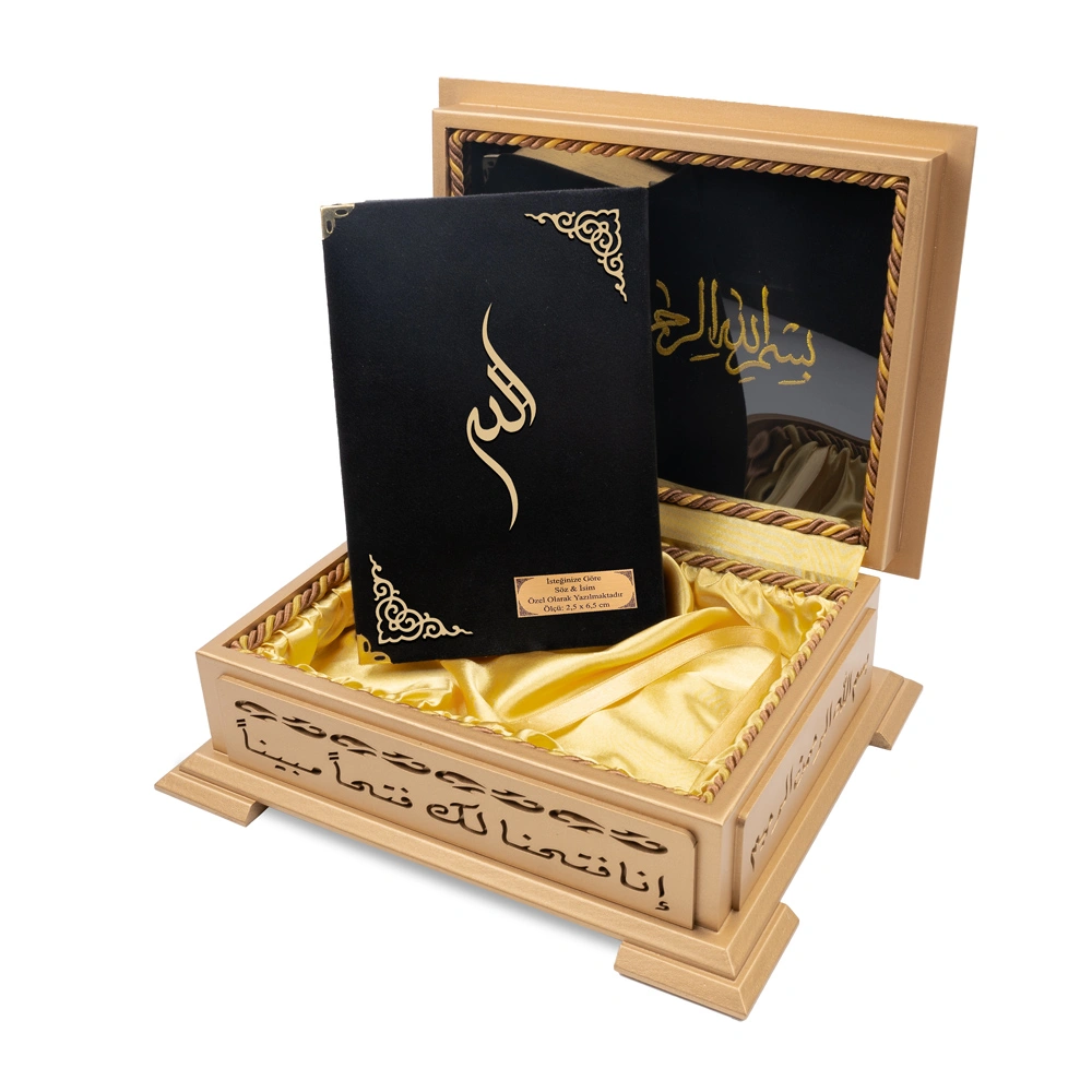 Ahşap Kutulu Kadife Kuran-ı Kerim (Hafız Boy, Divan Lafzatullah, Siyah)