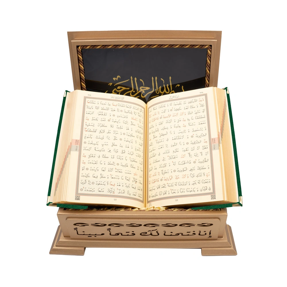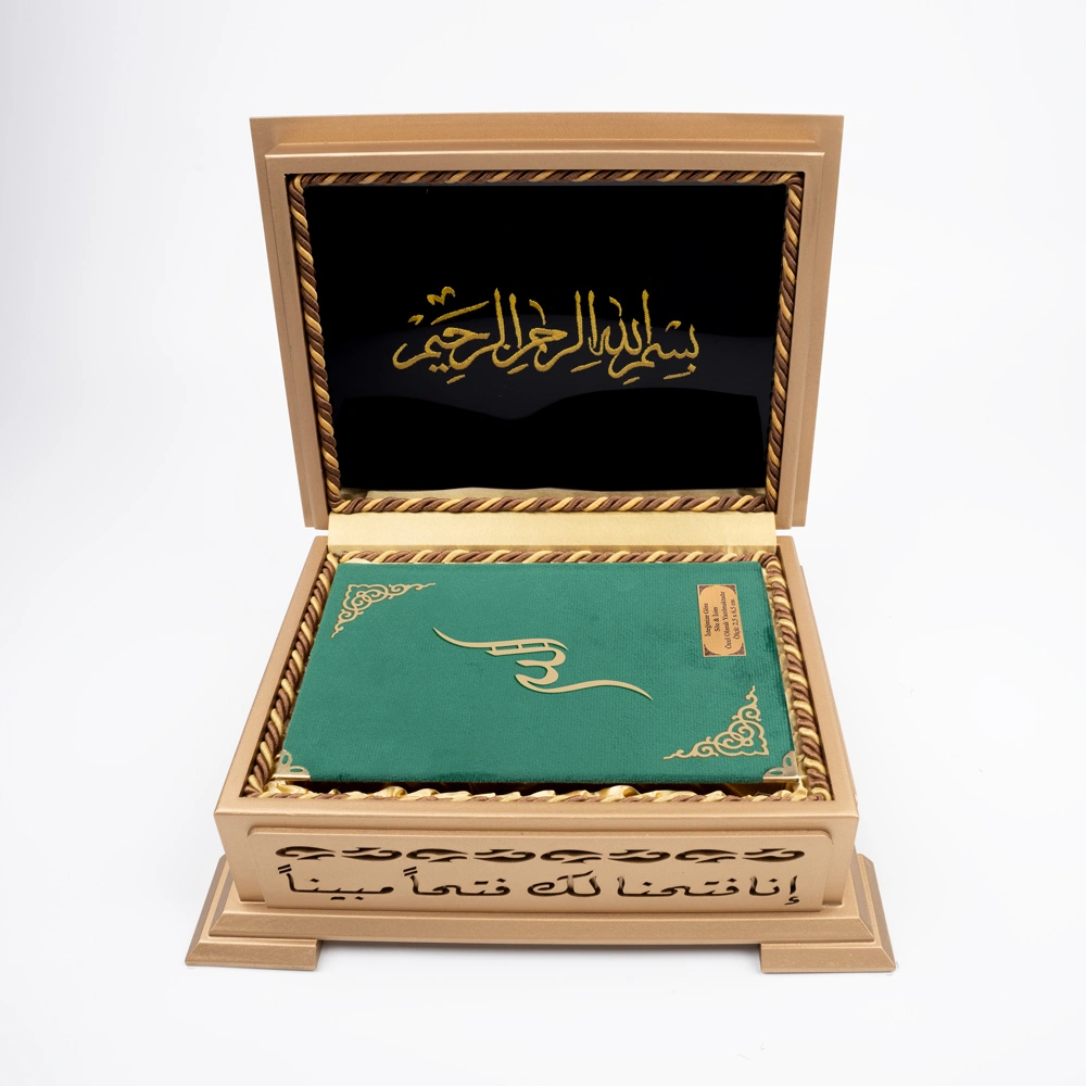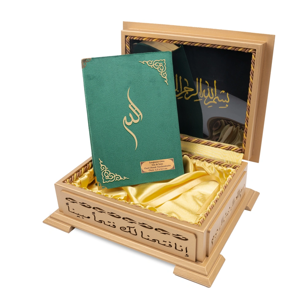 Ahşap Kutulu Kadife Kuran-ı Kerim (Hafız Boy, Divan Lafzatullah, Yeşil)