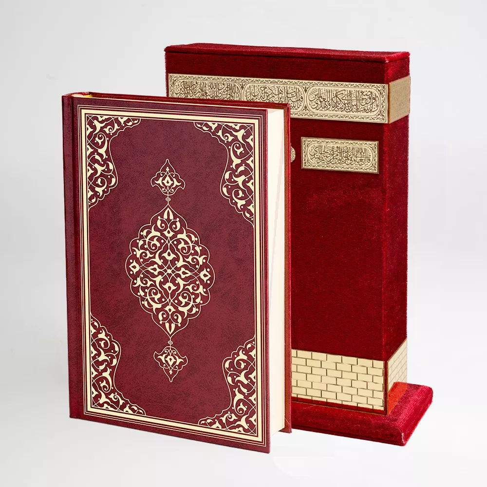 Ahşap Raşel Kaplama Dik Kutulu Çanta Boy Kur'an-ı Kerim (Pleksili, Bordo)