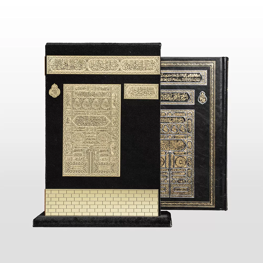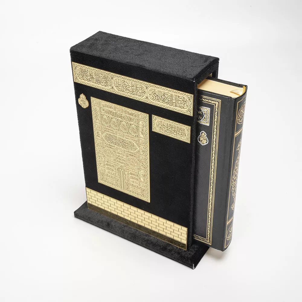 Ahşap Raşel Kaplama Dik Kutulu Hafız Boy Kur'an-ı Kerim (Pleksili, Siyah)