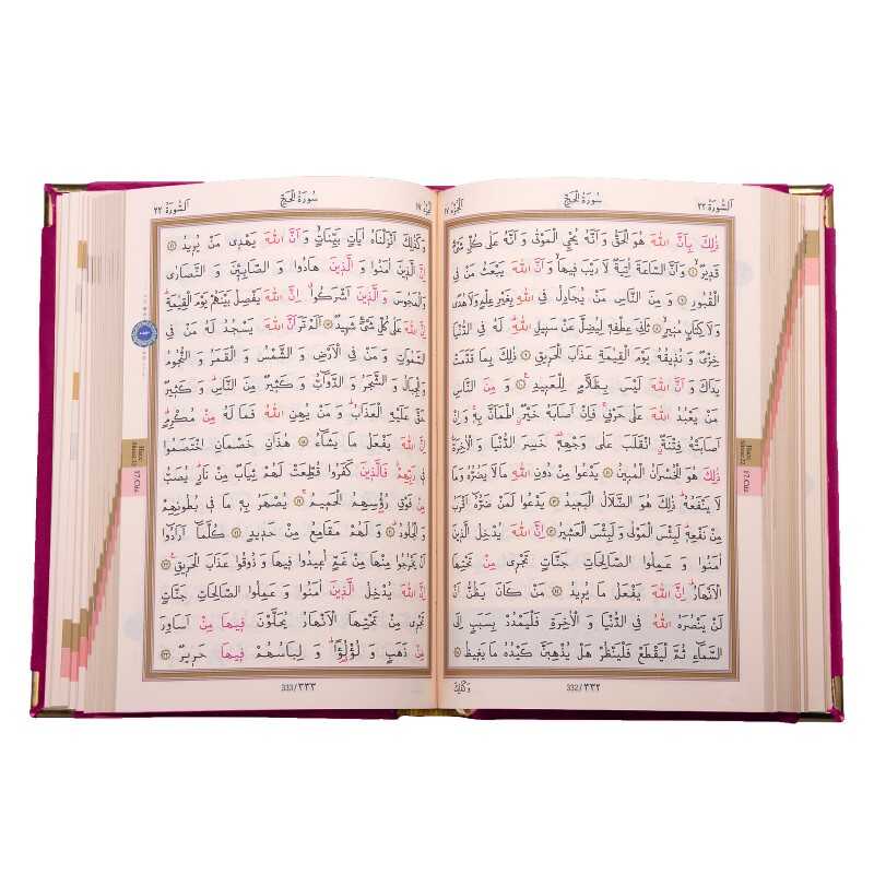 Big Pocket Size Velvet Bound Qur'an Al-Kareem (Pink, Embroidered, Gilded, Stamped)