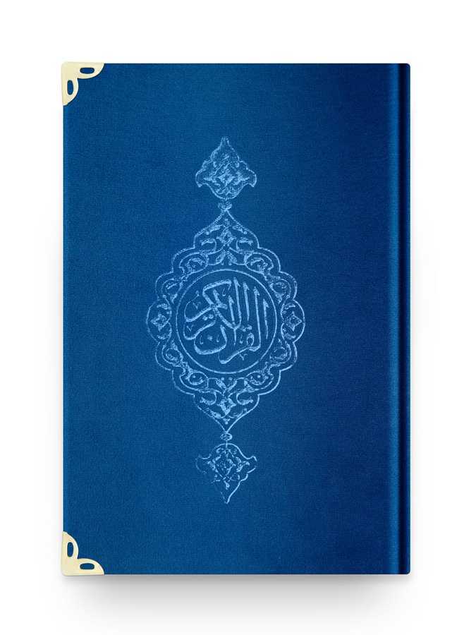 Bookrest Size Velvet Bound Qur'an Al-Kareem (Navy Blue, Gilded, Stamped)