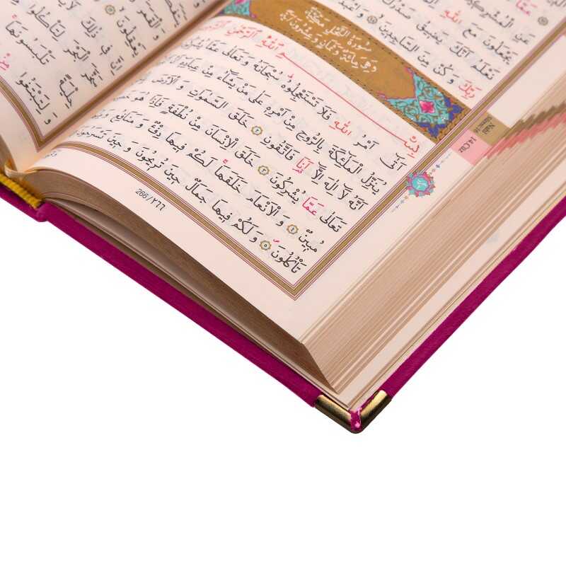 Big Pocket Size Velvet Bound Qur'an Al-Kareem (Fuchsia, Rose Figured, Stamped)