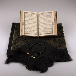 Şal + Seccade + Tesbih + Kuran Hediye Seti (Çanta Boy, Siyah)