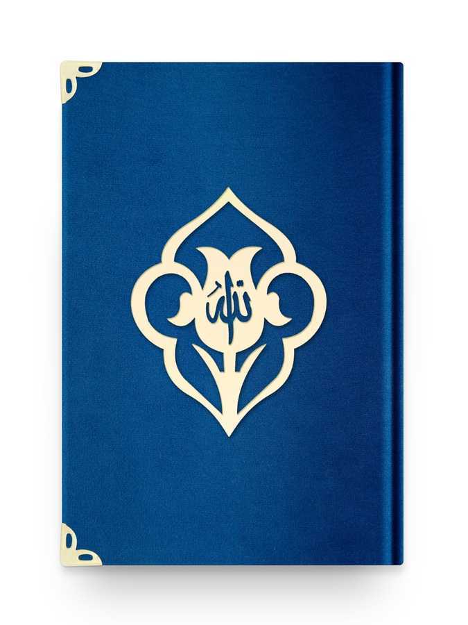 Bag Size Velvet Bound Qur'an Al-Kareem (Navy Blue, Rose Figured, Gilded, Stamped)