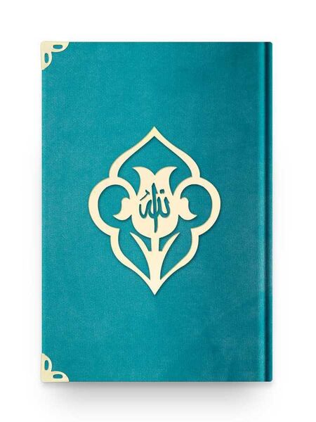 Pocket Size Velvet Bound Qur'an Al-Kareem (Turquoise, Rose Figured, Stamped)
