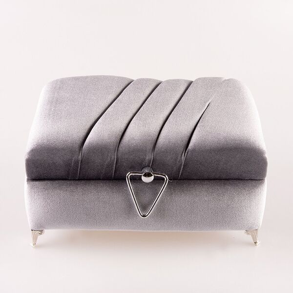 Çizgili Kutu Çeyizlik, Şal + Seccade + Tesbih + Kuran Hediye Seti (Hafız B. Kadife, Gri, Elif-Vav)