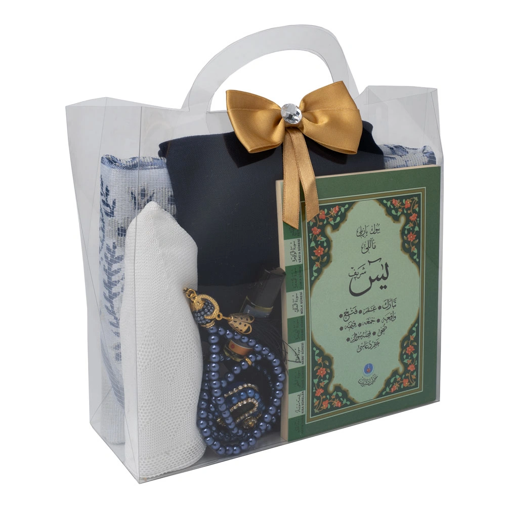 Eşarp + Takke + Seccade + Tesbih + Zikirmatik + Esans + Yasin Hediye Seti (Çanta Boy, Lacivert)