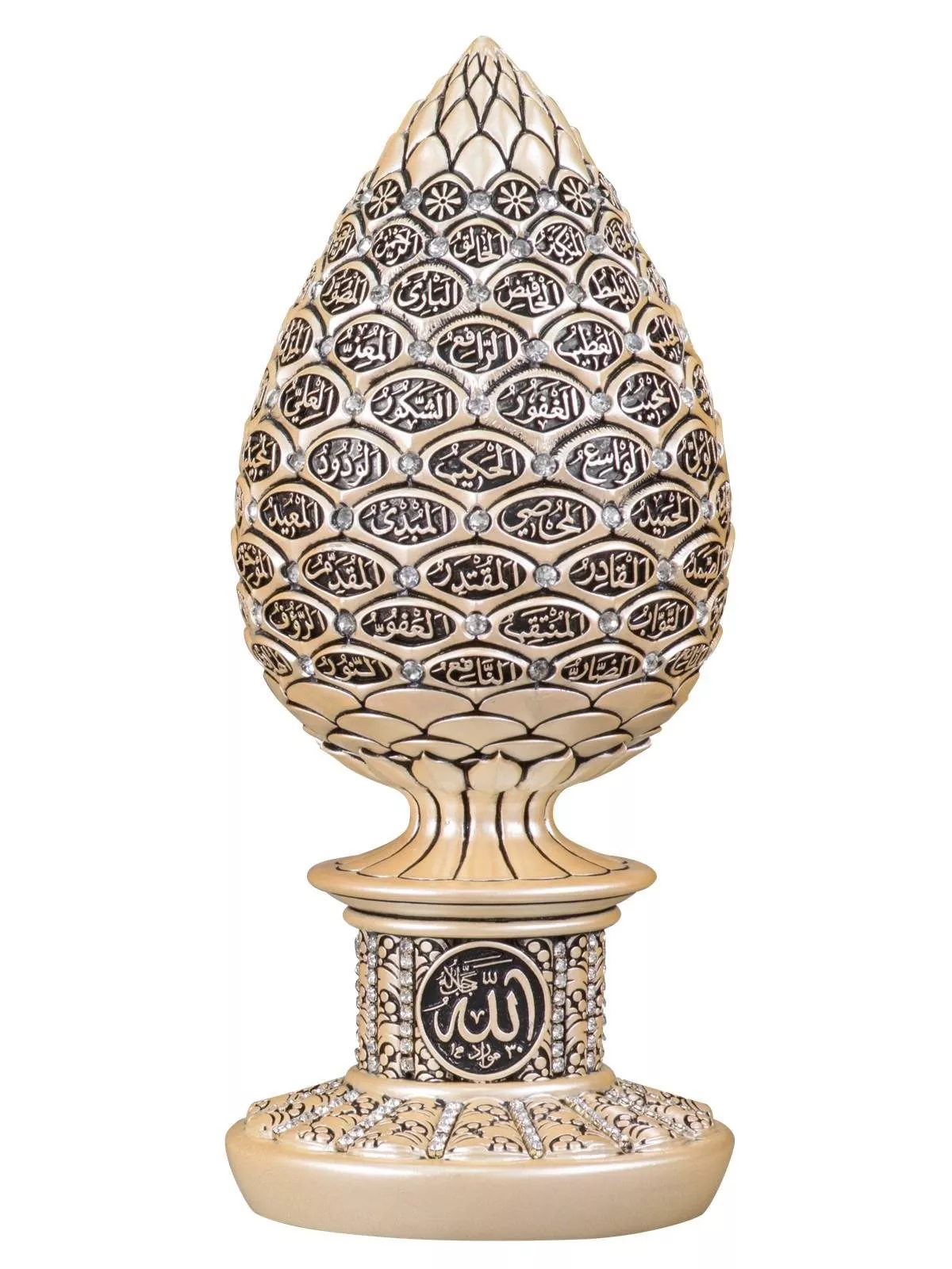 Esmaül Hüsna Yazılı Kozalak Tasarım Biblo - Sedef Renk, Küçük Boy, Dekoratif Hediyelik