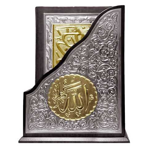Gilded, Silver Colour Plated Qur'an With Vertical Case (Hafiz Size)
