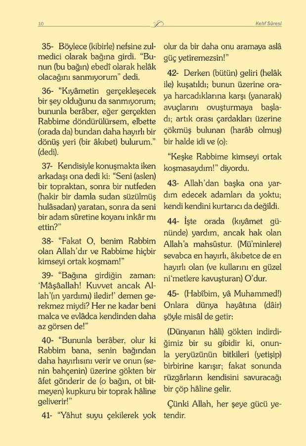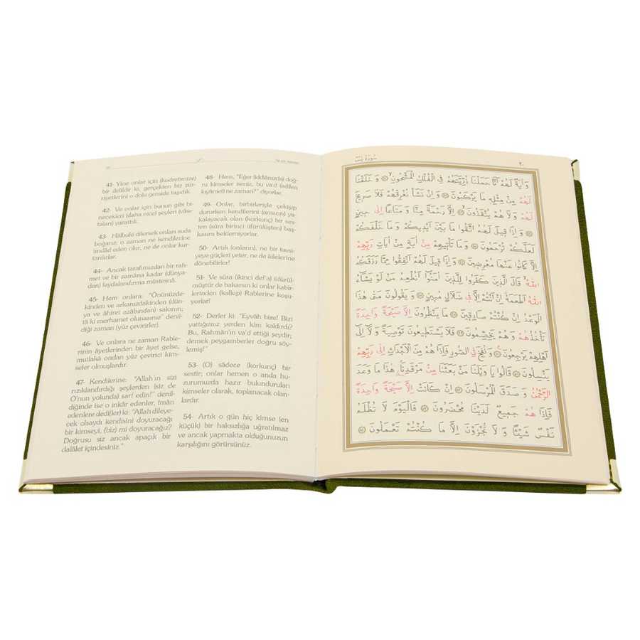 Yan tarafında bulunan mealini okuyarak manalarını da anlayabilir ve tefekkür edebilirsiniz.