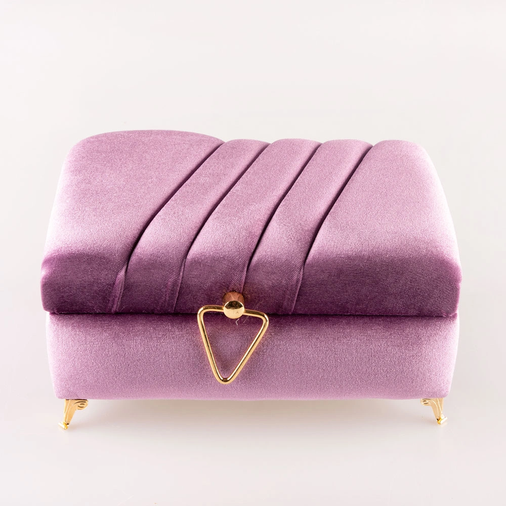 Kadife Sandık Çeyizlik Kuran Kutusu, Çizgili (Lila, İçi Boş Kutu)
