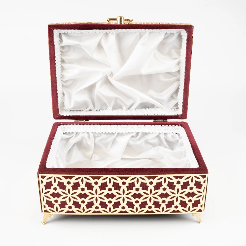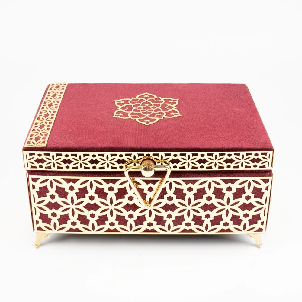 Kadife Sandık Çeyizlik Kuran Kutusu, Desenli (Bordo, İçi Boş Kutu)