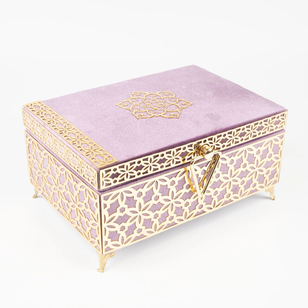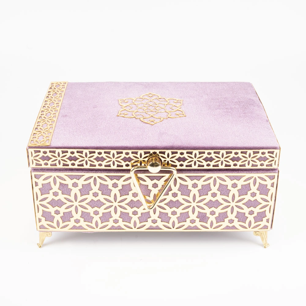 Kadife Sandık Çeyizlik Kuran Kutusu, Desenli (Lila, İçi Boş Kutu)