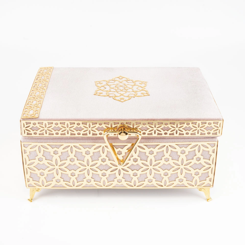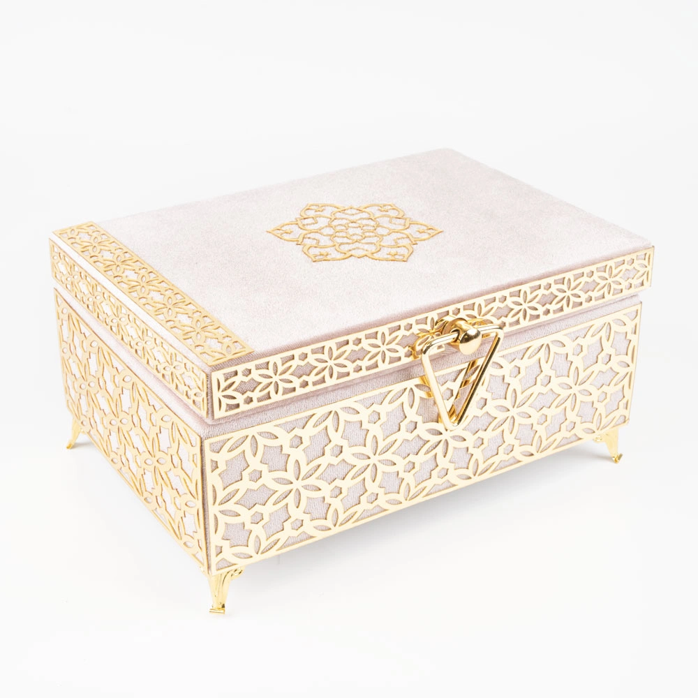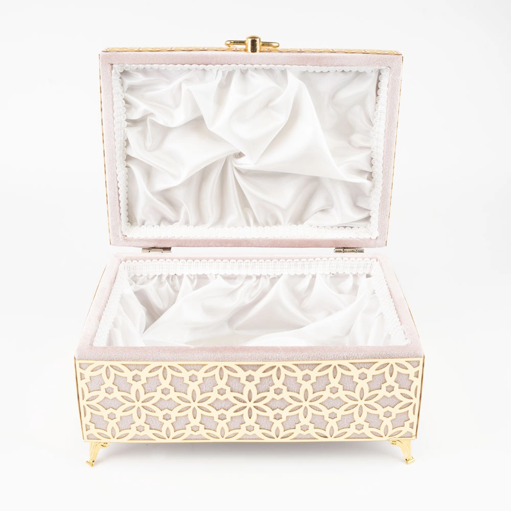 Kadife Sandık Çeyizlik Kuran Kutusu, Desenli (Pudra Pembe, İçi Boş Kutu)