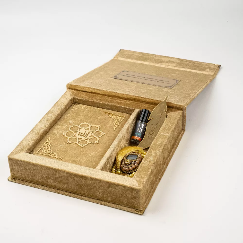 Tesbih + Zikirmatik + Esans + Ayraç + Çanta Boy Kuran Hediye Seti (Raşel Kutulu)