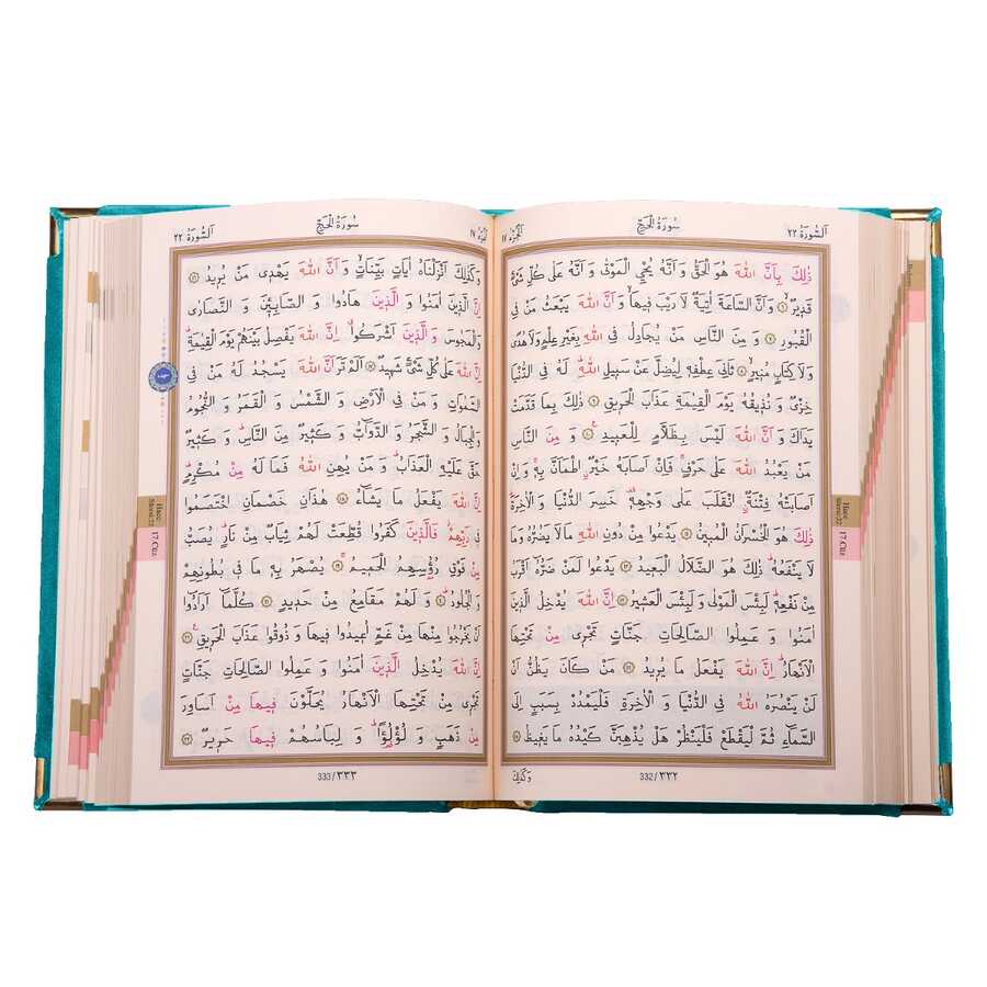 Pocket Size Velvet Bound Qur'an Al-Kareem (Turquoise, Gilded, Stamped)