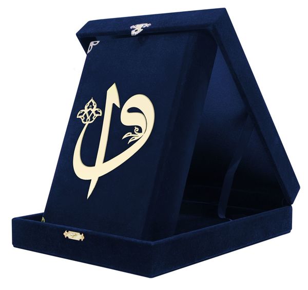 Qur'an Al-Kareem With Velvet Box (Bookrest Size, Alif - Waw Cover, Navy Blue)