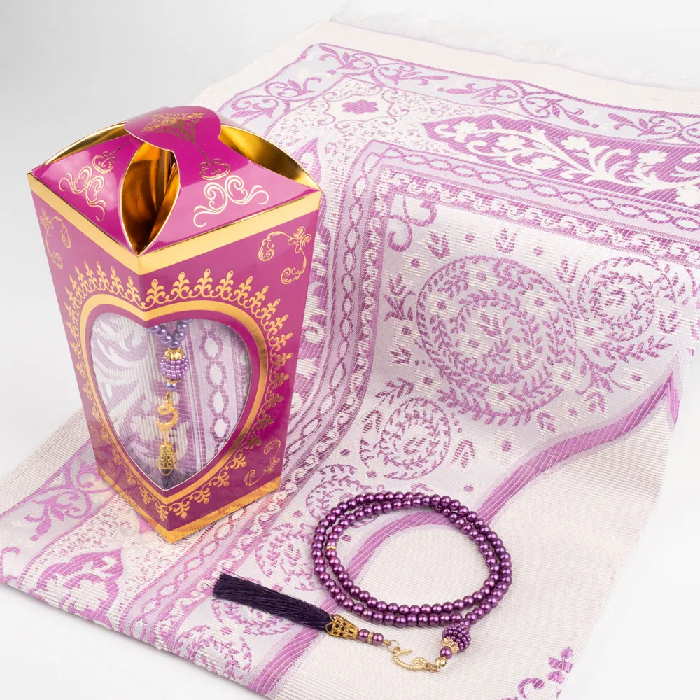 Ramazan Feneri Tesbih + Seccade Hediye Seti (Kraft Asetat Kutu, Mor)