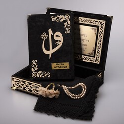 Shawl + Salah Beads + Quran Gift Set (Medium Size, Black, Gold Plexy)