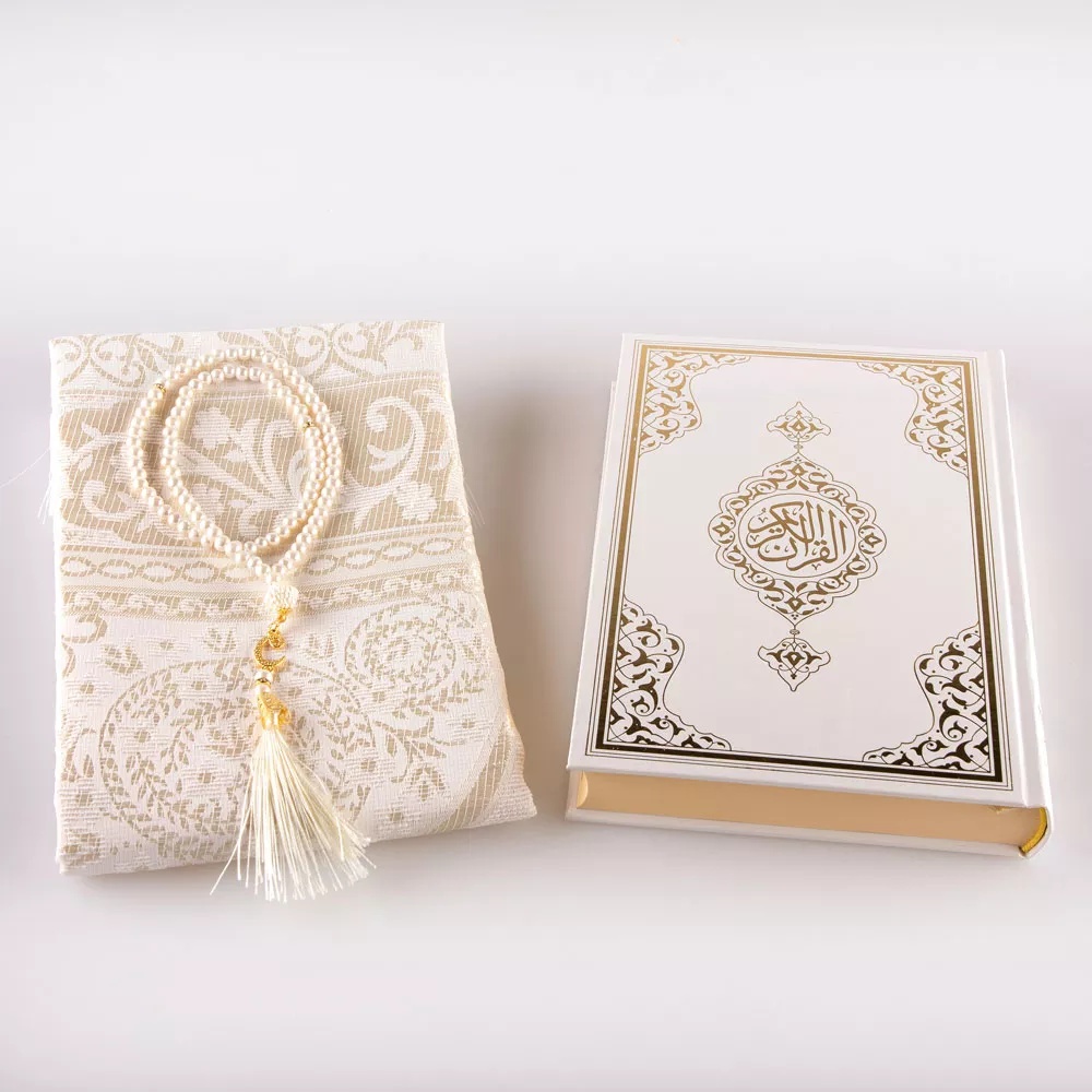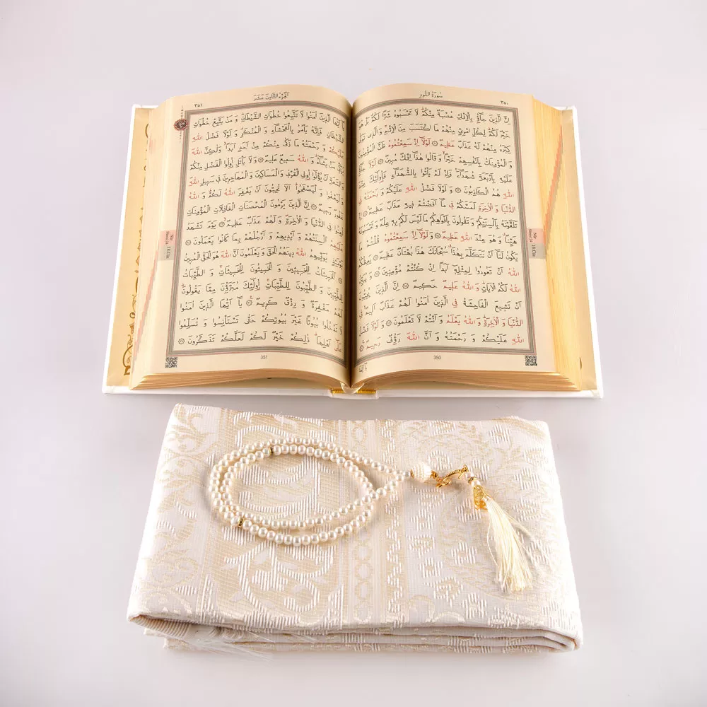 Seccade + Tesbih + Kuran Hediye Seti (Çanta Boy, Yeni Cilt, Beyaz)