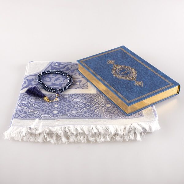 Seccade + Tesbih + Kuran Hediye Seti (Orta Boy, Lacivert)