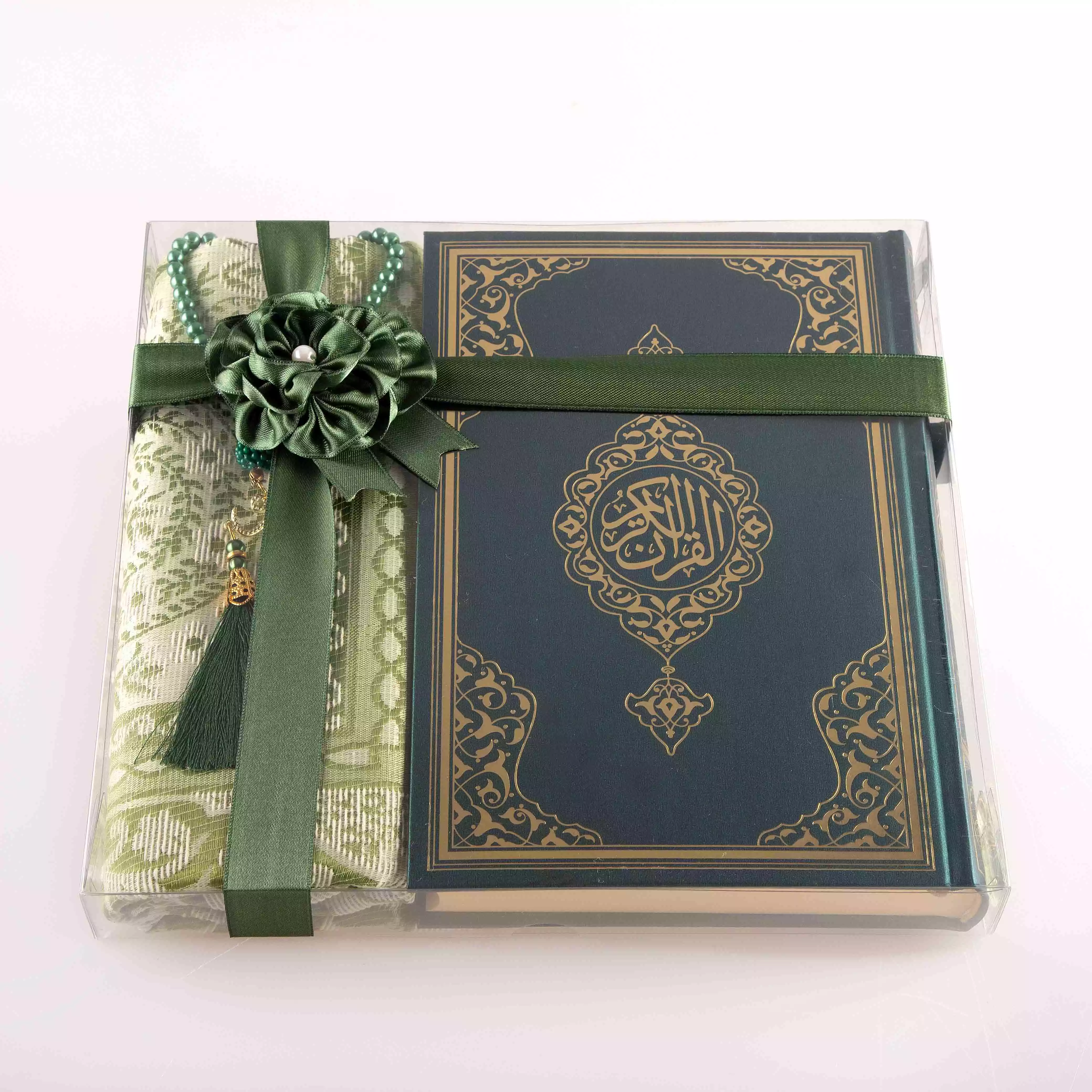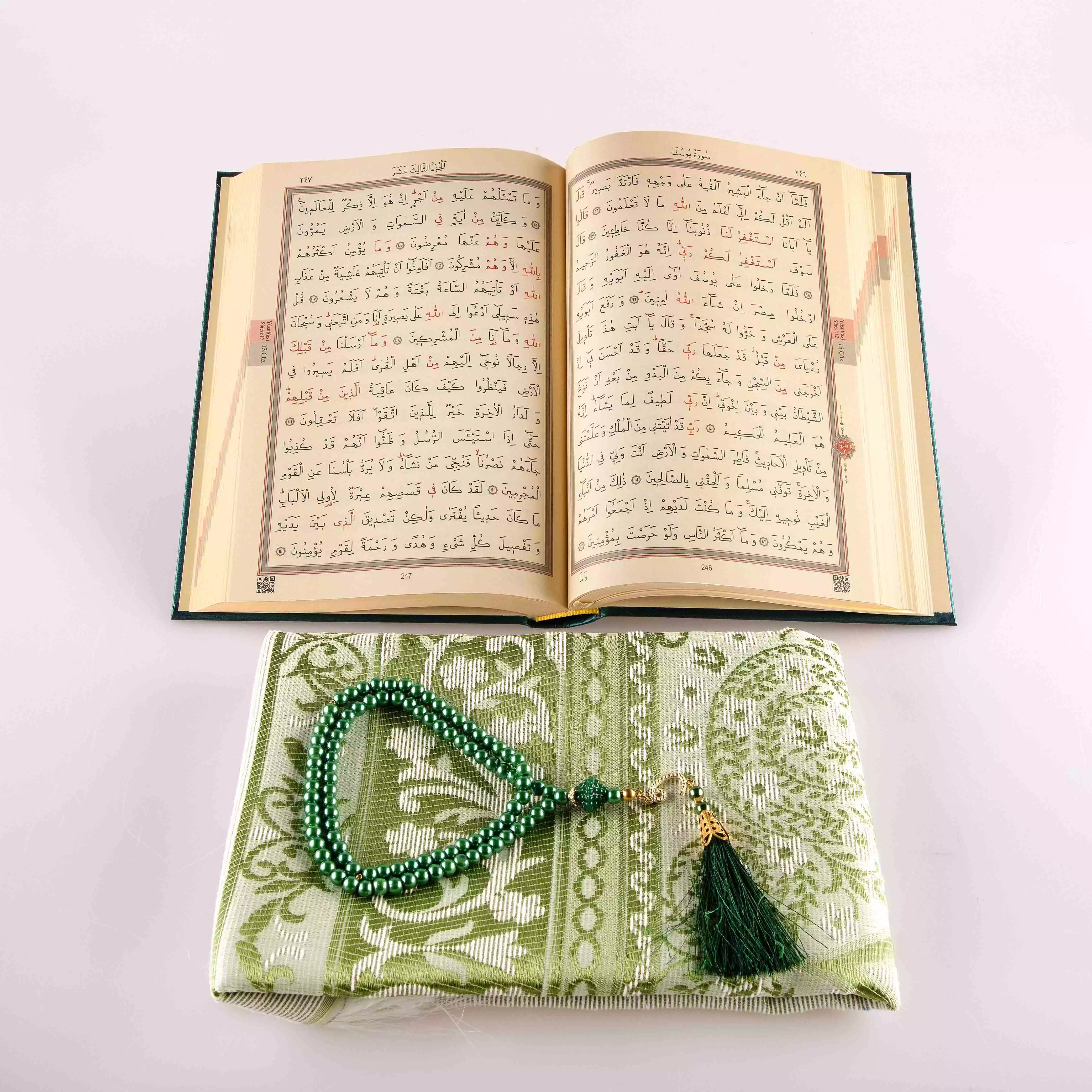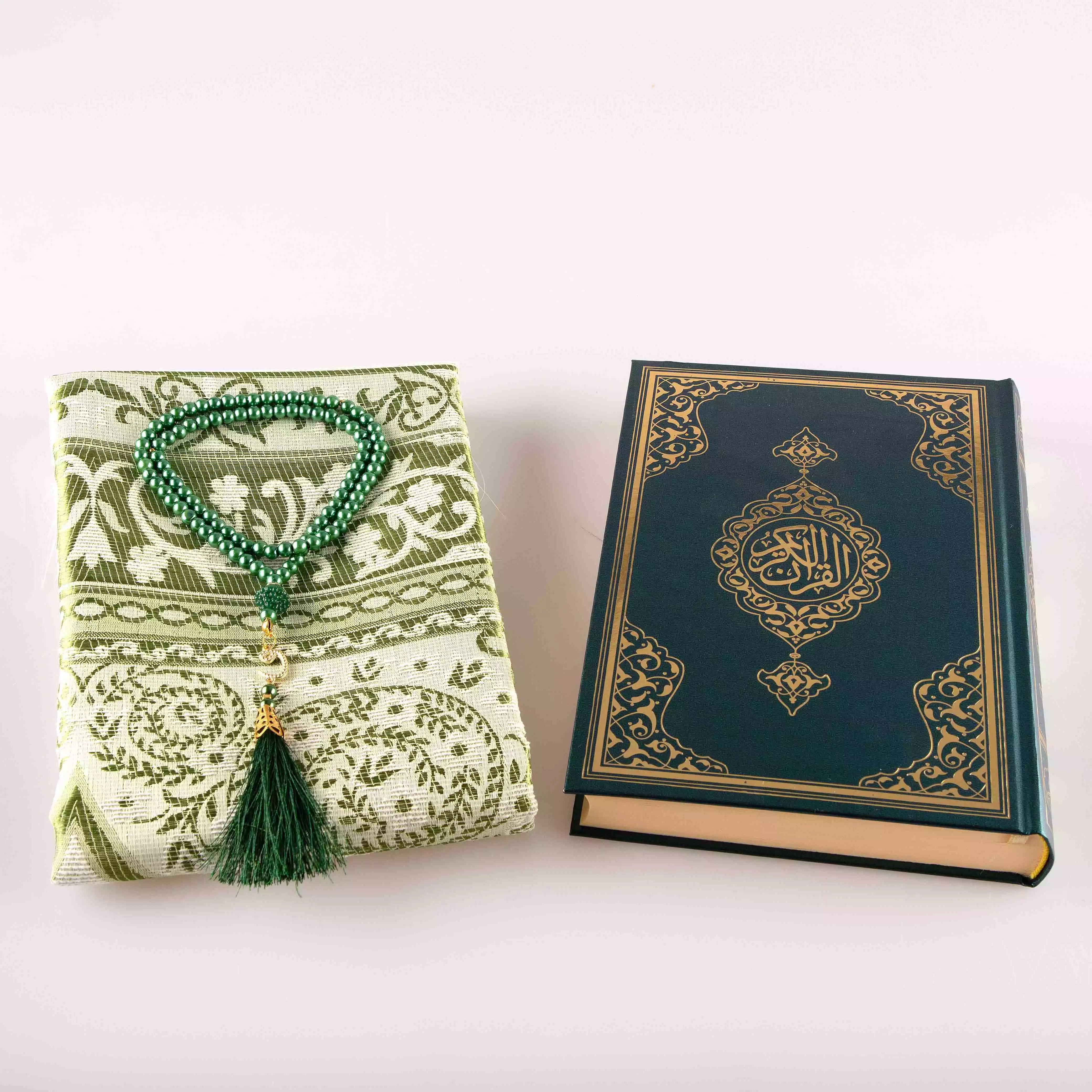 Seccade + Tesbih + Kuran Hediye Seti (Orta Boy, Yeşil, Ekonomik Cilt)