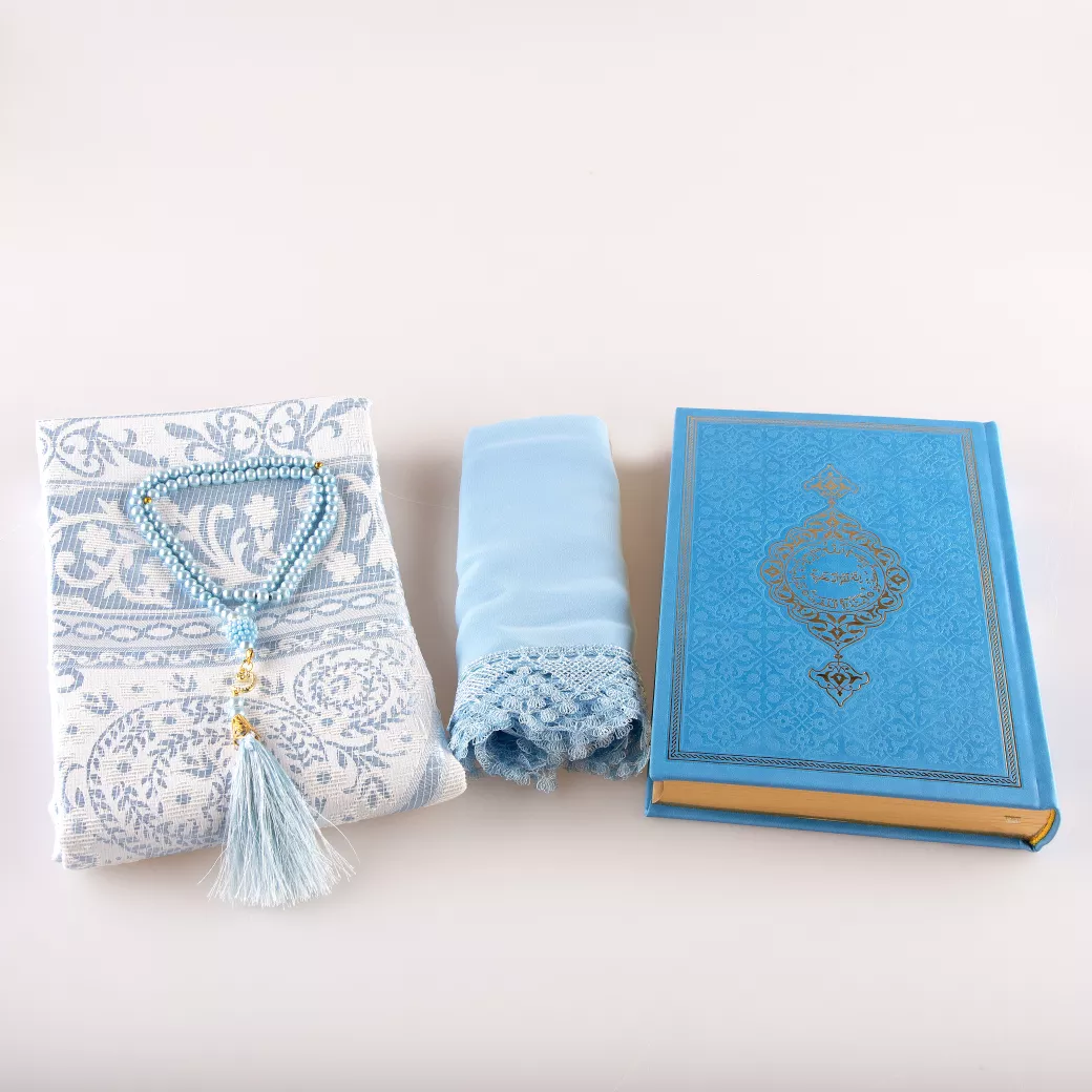 Shawl + Prayer Mat + Salah Beads + Quran Gift Set (Bag Size, Green)