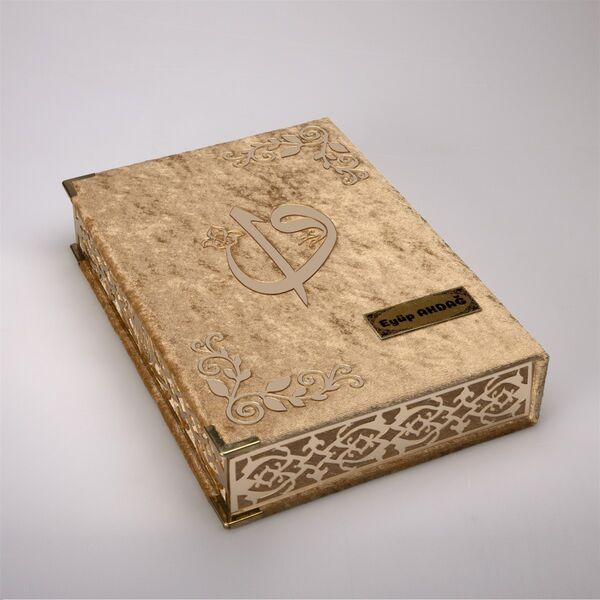 Shawl + Salah Beads + Quran Gift Set (Medium Size, Gold, Gold Plexy)