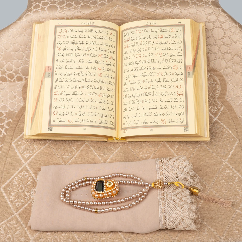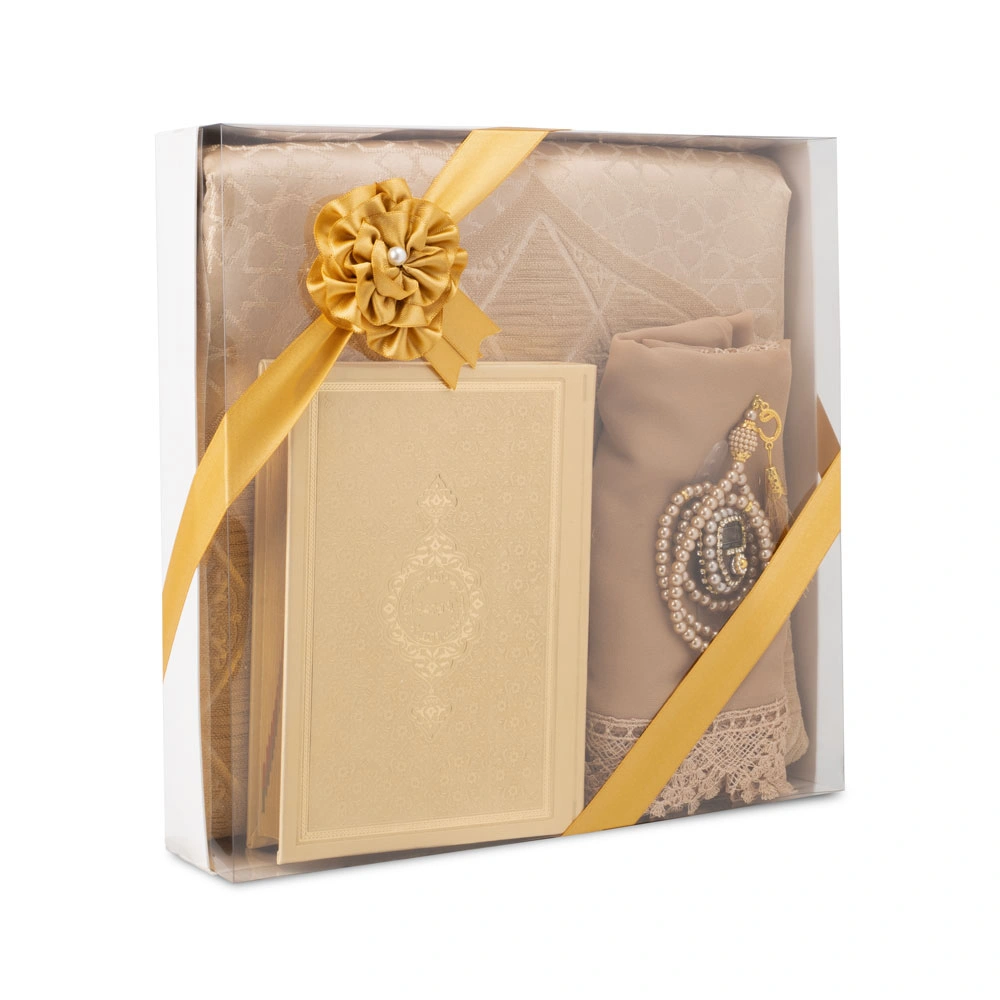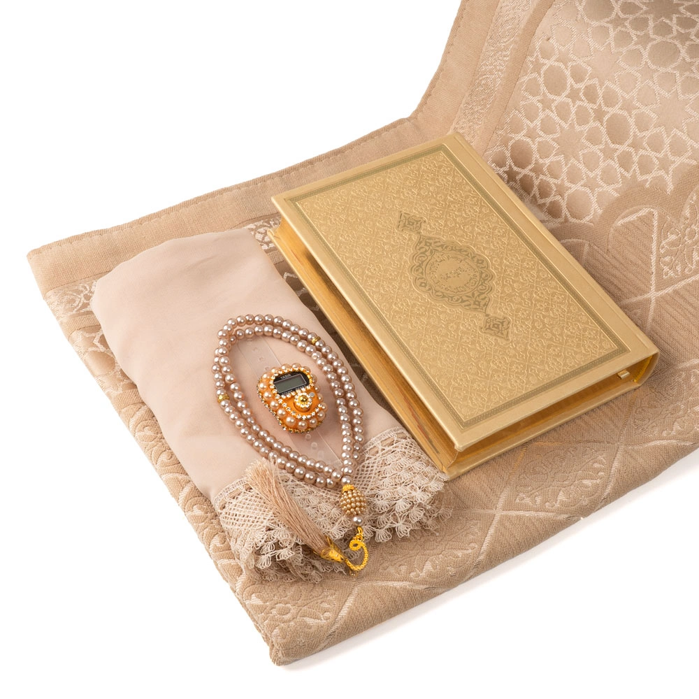 Şönil Seccade + Şal + Tesbih + Zikirmatik + Hafız Boy Kuran Hediye Seti (Gold)