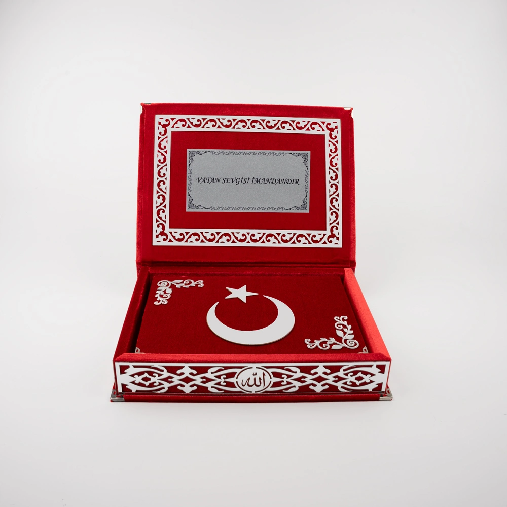 Raşel Kutulu Ay Yıldız Hediyelik Kuran-ı Kerim (Orta Boy, Kırmızı, Gümüş Pleksi)
