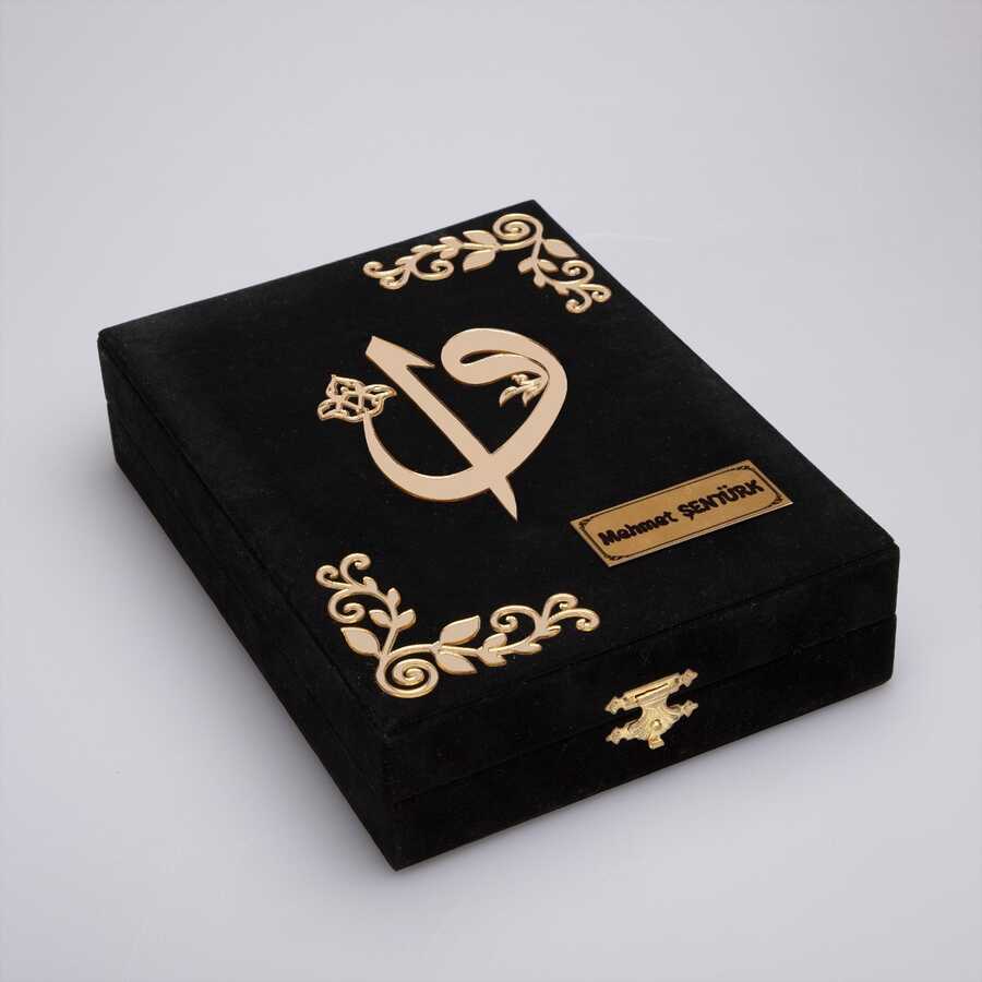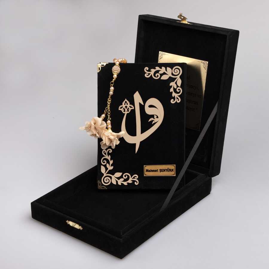 Plaket Kutulu Hediyelik Kuran-ı Kerim (Çanta Boy, Elif-Vav, Siyah)