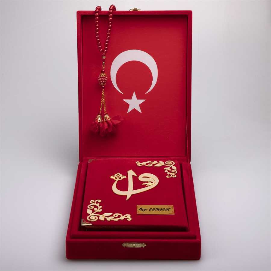 Plaket Kutulu Hediyelik Kuran-ı Kerim (Hafız Boy, Elif-Vav, Kırmızı)