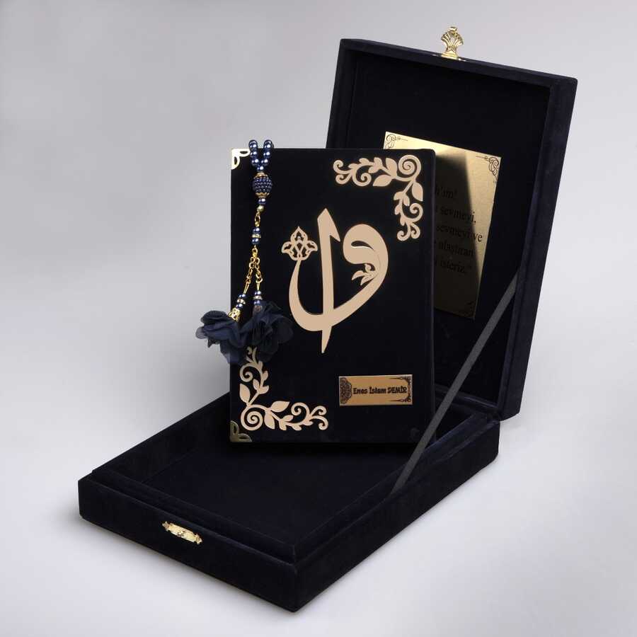 Plaket Kutulu Hediyelik Kuran-ı Kerim (Hafız Boy, Elif-Vav, Lacivert)