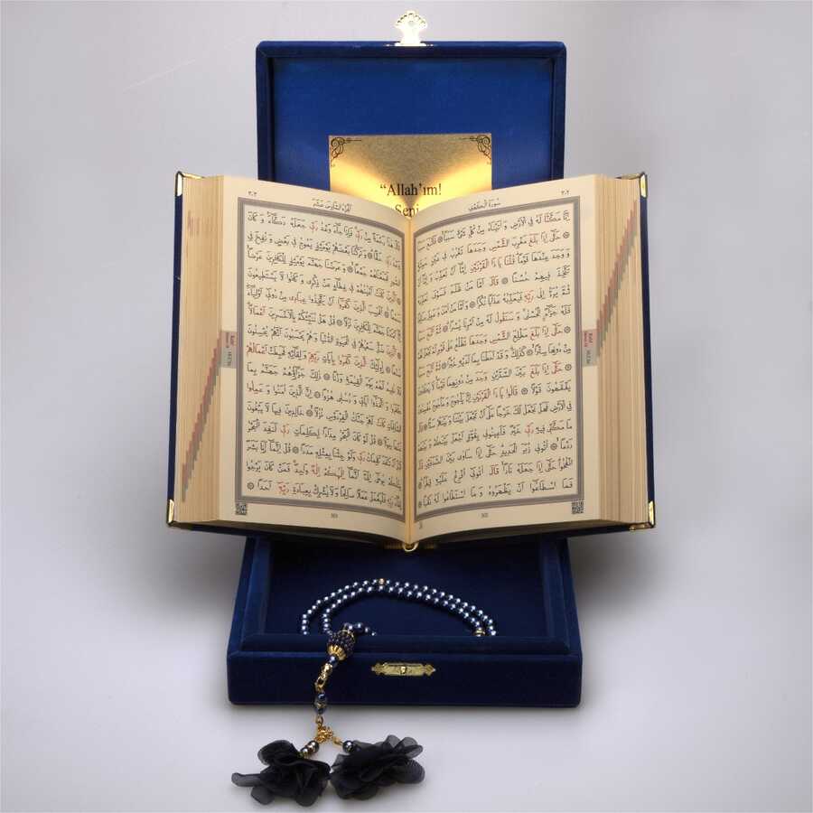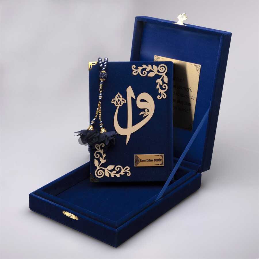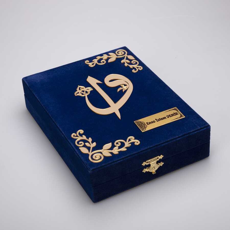 Plaket Kutulu Hediyelik Kuran-ı Kerim (Orta Boy, Elif-Vav, Koyu Mavi)