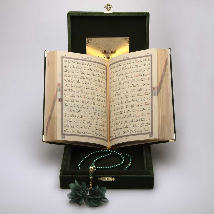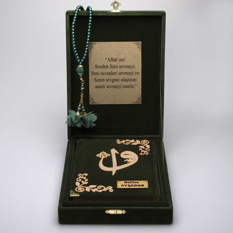 Plaket Kutulu Hediyelik Kuran-ı Kerim (Orta Boy, Elif-Vav, Yeşil)