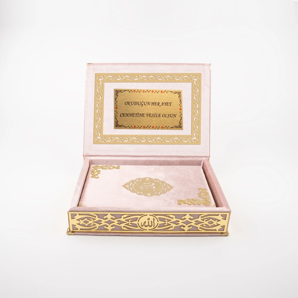 Raşel Kutulu Hediyelik Kuran-ı Kerim (Orta Boy, Bebe Pembe, Şems Lafzatullah Gold Pleksi)